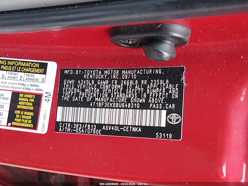 • 4T1BF3EK6BU648310
