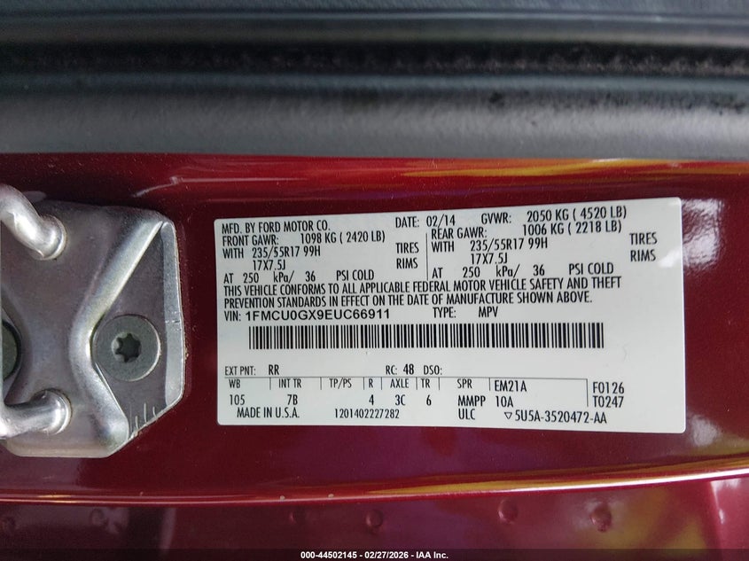 • 1FMCU0GX9EUC66911