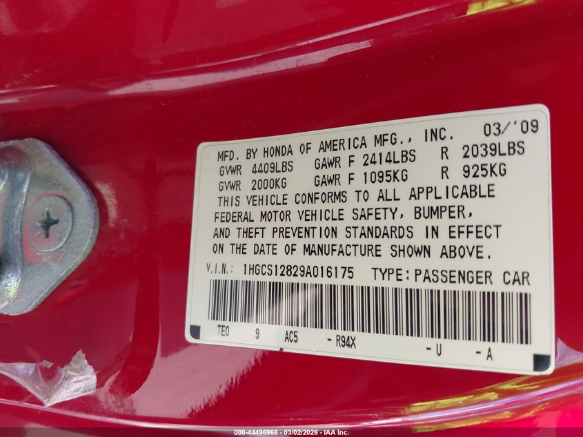 • 1HGCS12829A016175