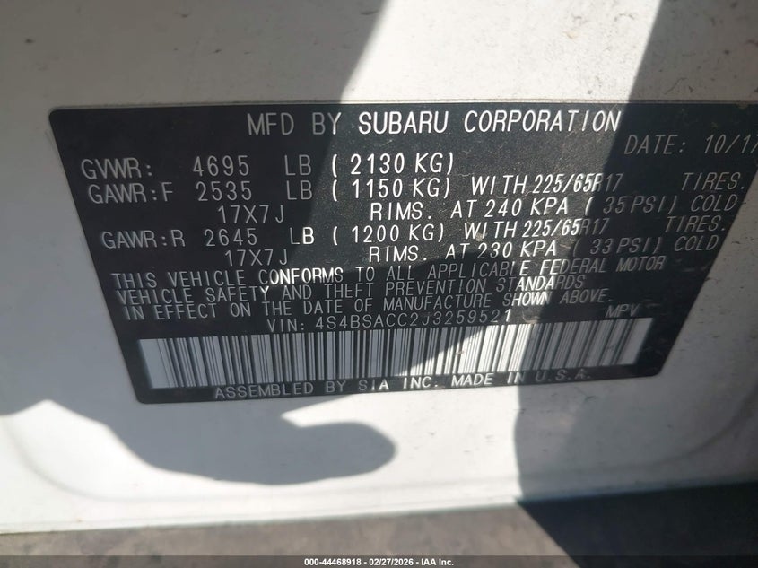 • 4S4BSACC2J3259521