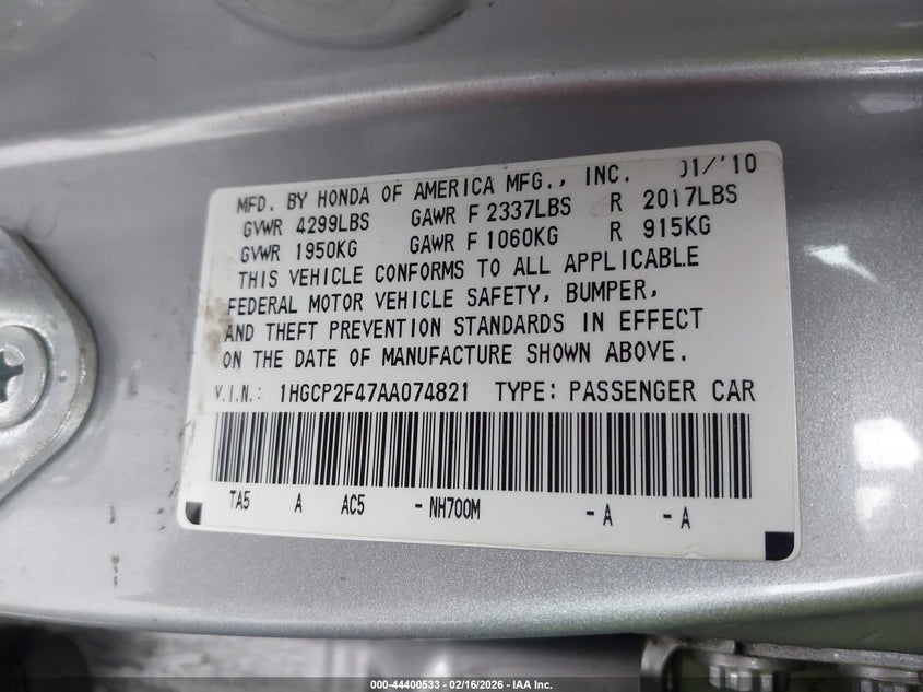 • 1HGCP2F47AA074821