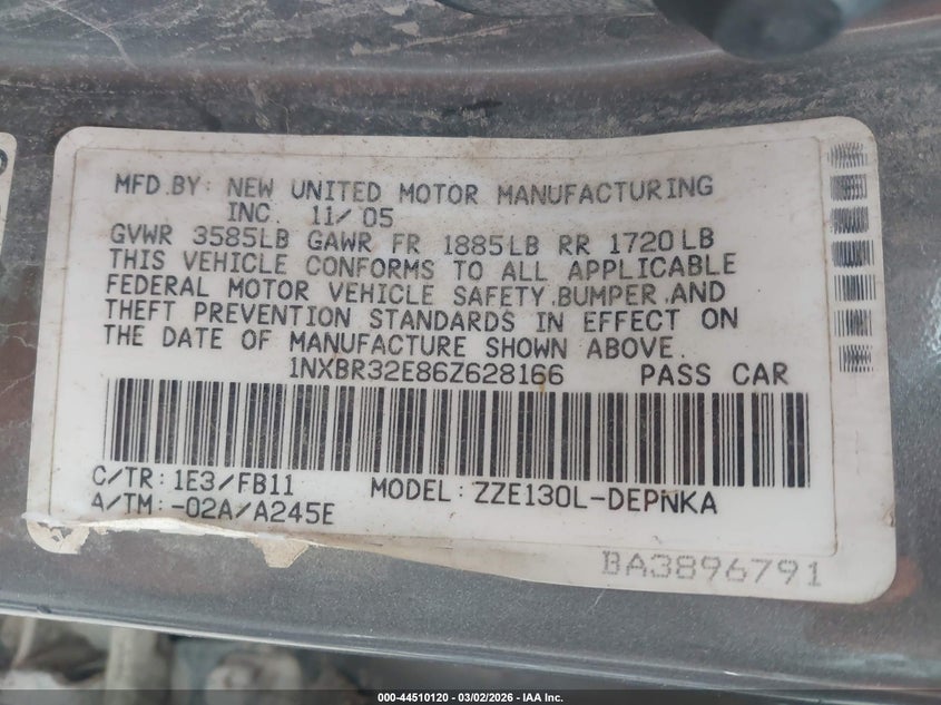 • 1NXBR32E86Z628166