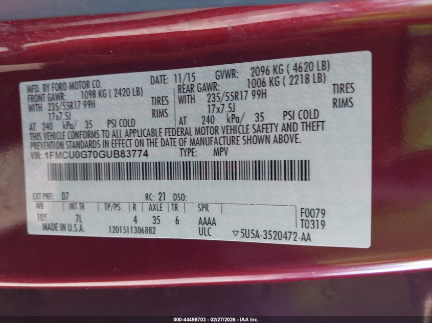 • 1FMCU0G70GUB83774