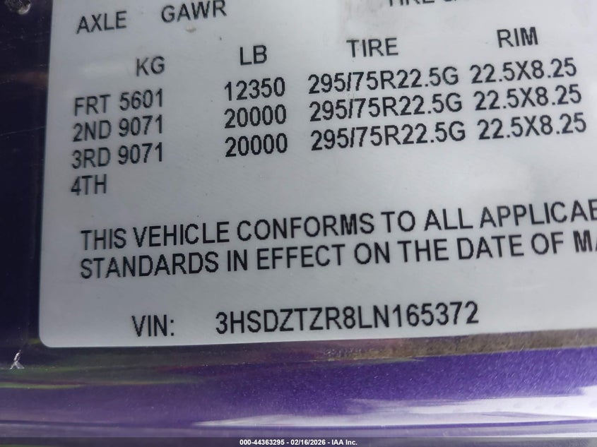 • 3HSDZTZR8LN165372