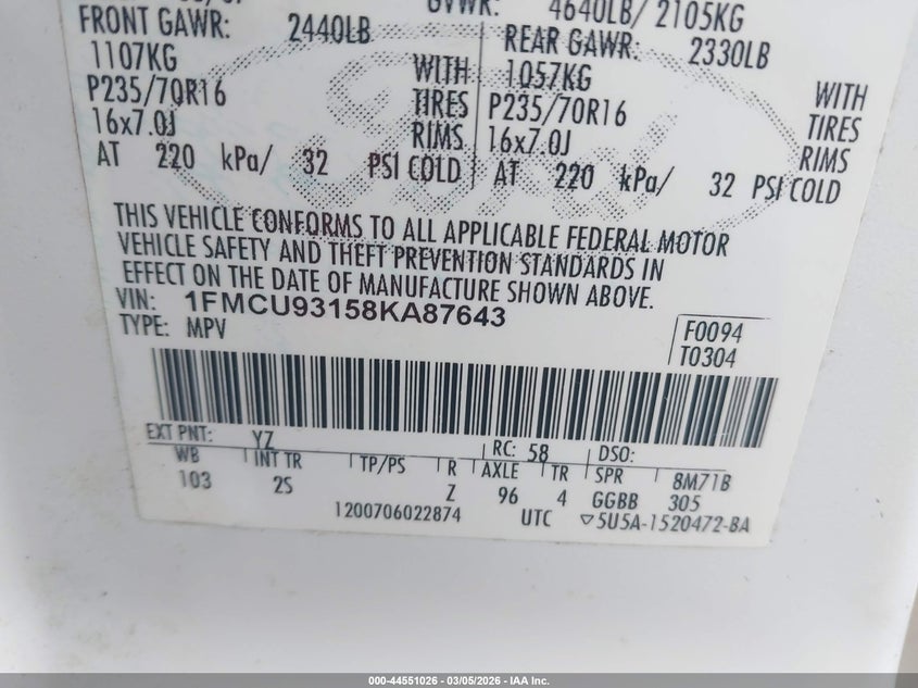 • 1FMCU93158KA87643