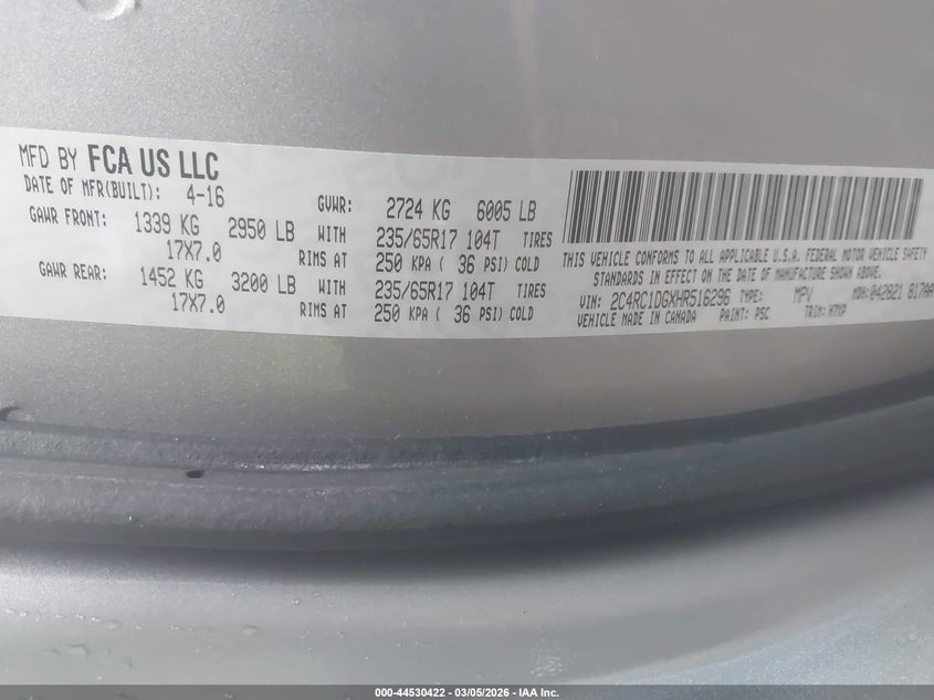 • 2C4RC1DGXHR516296