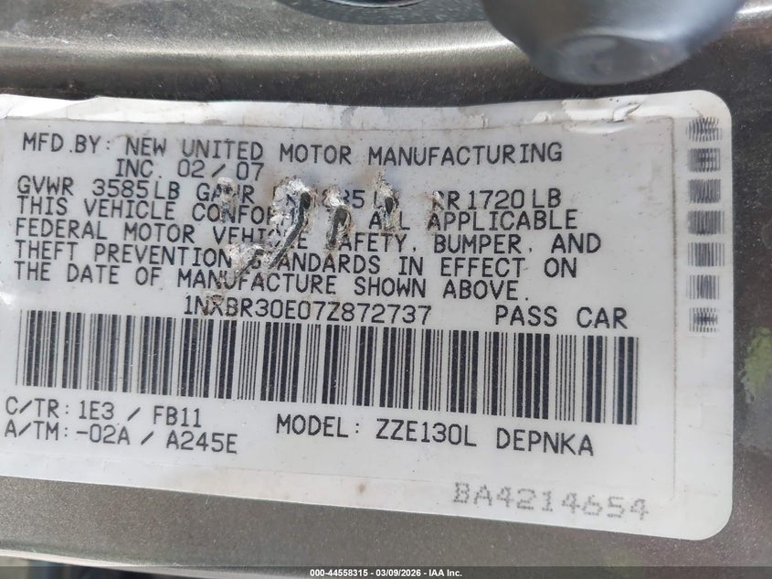 • 1NXBR30E07Z872737