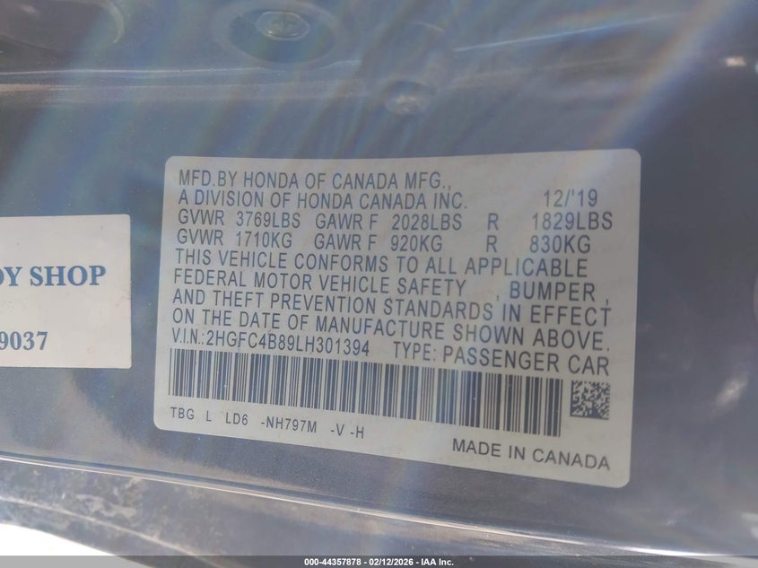 • 2HGFC4B89LH301394