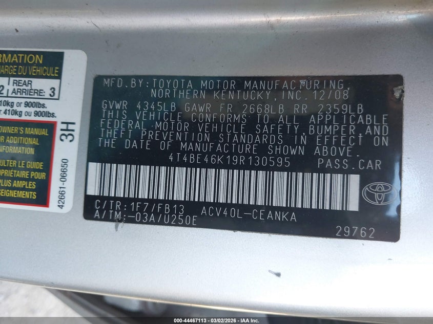 • 4T4BE46K19R130595