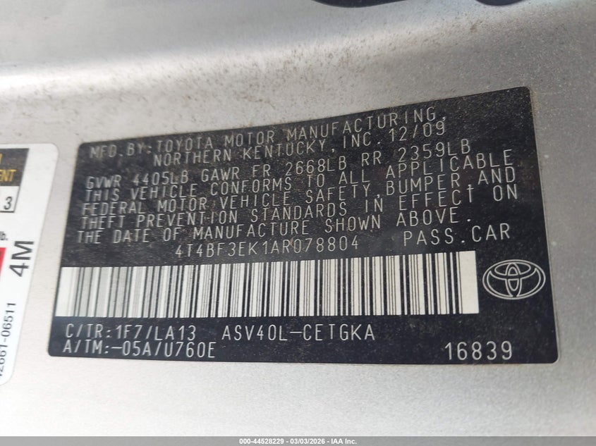 • 4T4BF3EK1AR078804