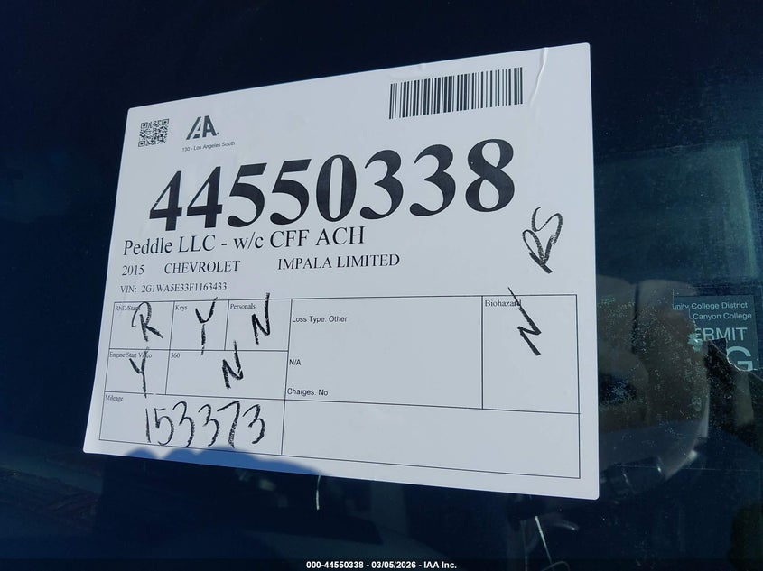 2015 CHEVROLET IMPALA LIMITED LS for Sale in Wilmington, CA