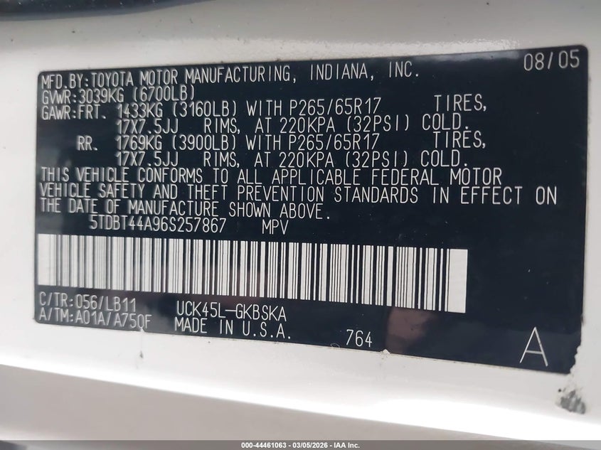 • 5TDBT44A96S257867