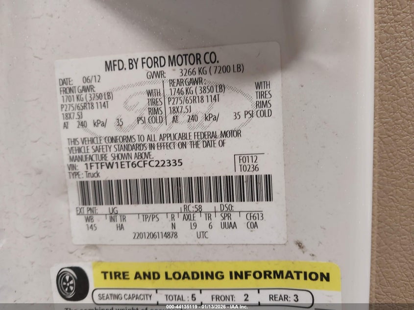 • 1FTFW1ET6CFC22335