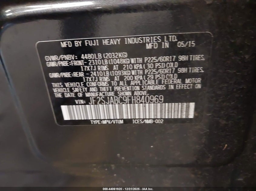 • JF2SJABC9FH840969