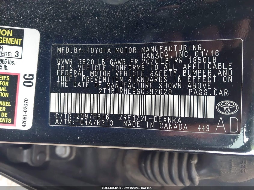 • 2T1BURHE9GC592029