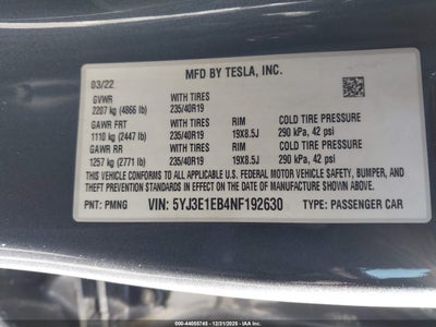 2022 TESLA MODEL 3 LONG RANGE DUAL MOTOR ALL-WHEEL DRIVE for Sale in Electric Vehicle Auctions, None