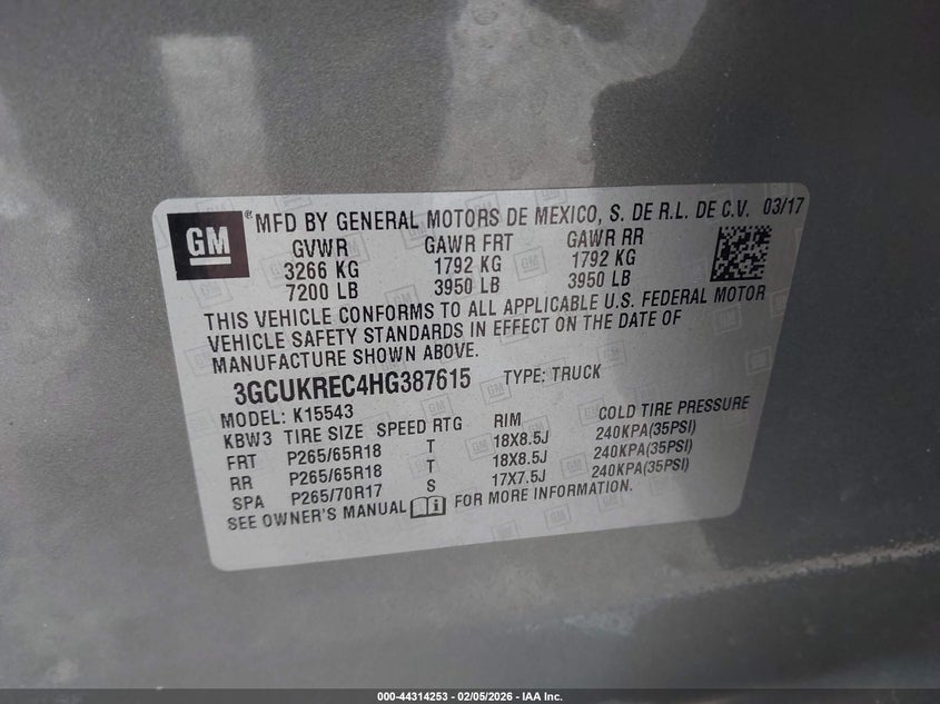 • 3GCUKREC4HG387615