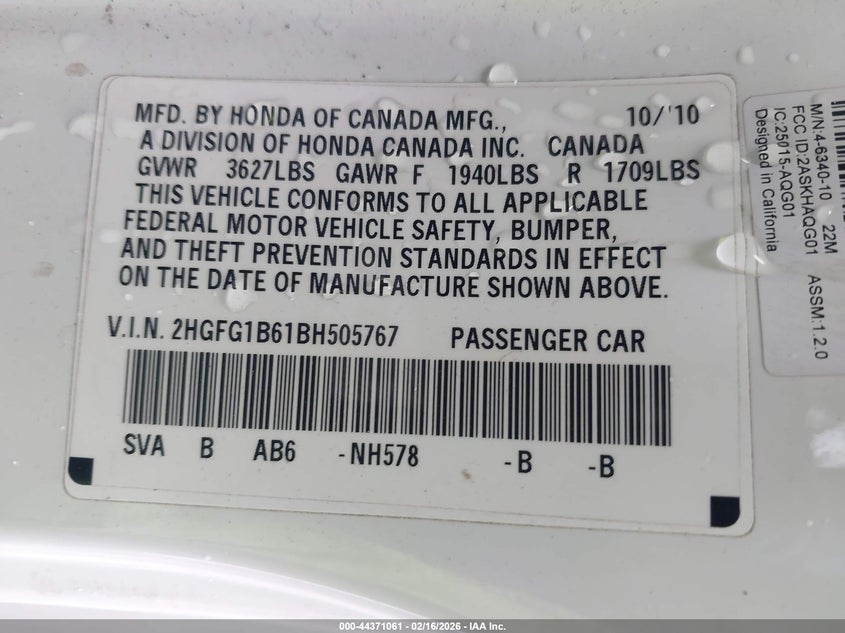 • 2HGFG1B61BH505767