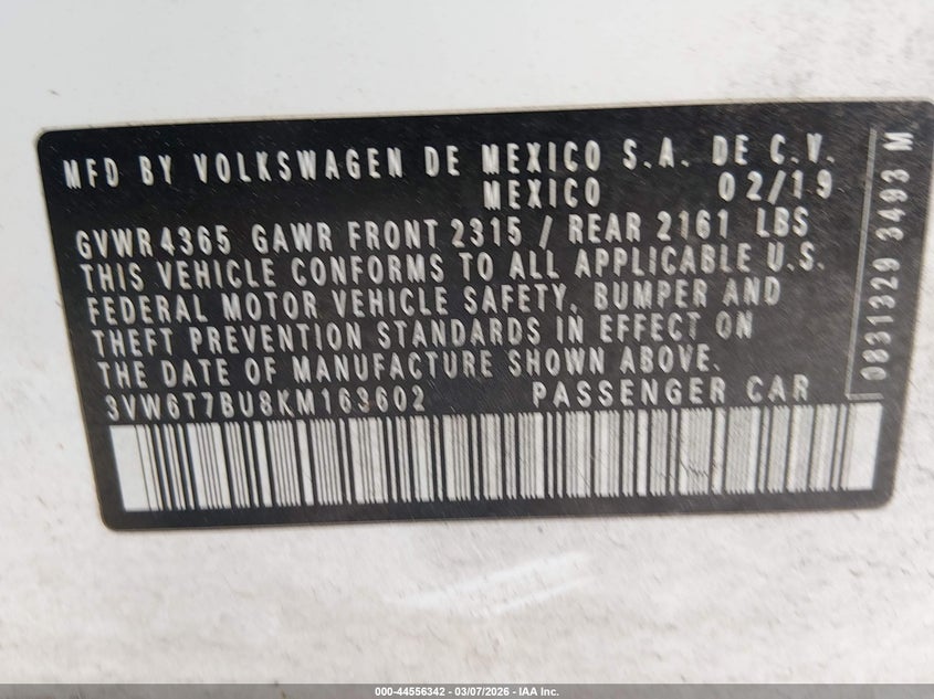 • 3VW6T7BU8KM163602