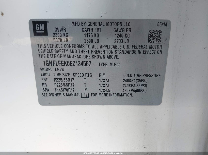 • 1GNFLFEK6EZ134567