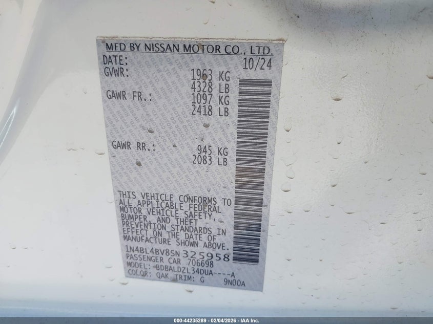 • 1N4BL4BV8SN325958