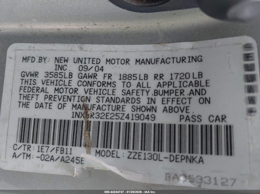 • 1NXBR32E25Z419049