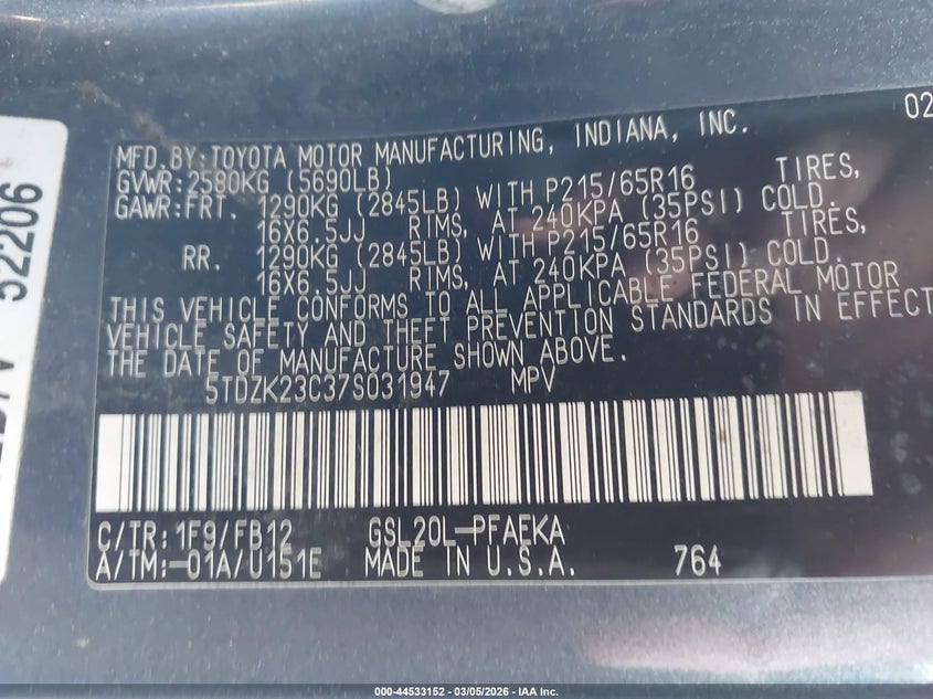 • 5TDZK23C37S031947