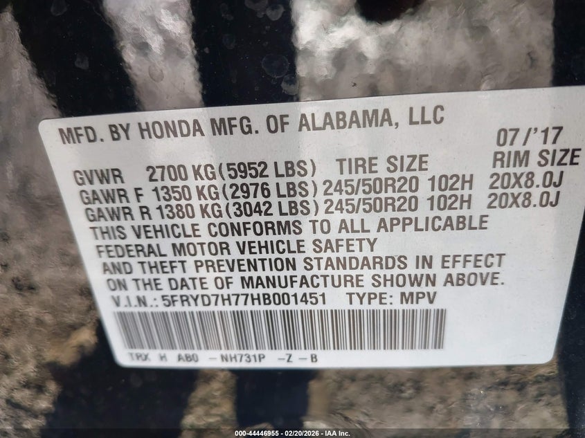 • 5FRYD7H77HB001451