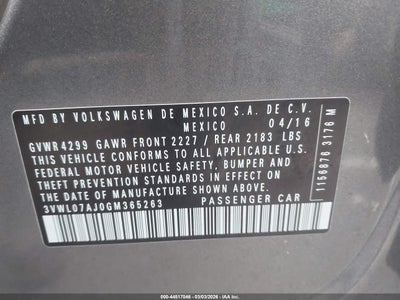 • 3VWL07AJ0GM365263