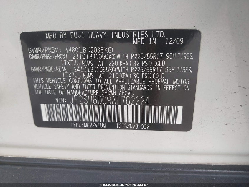 • JF2SH6DC9AH762224
