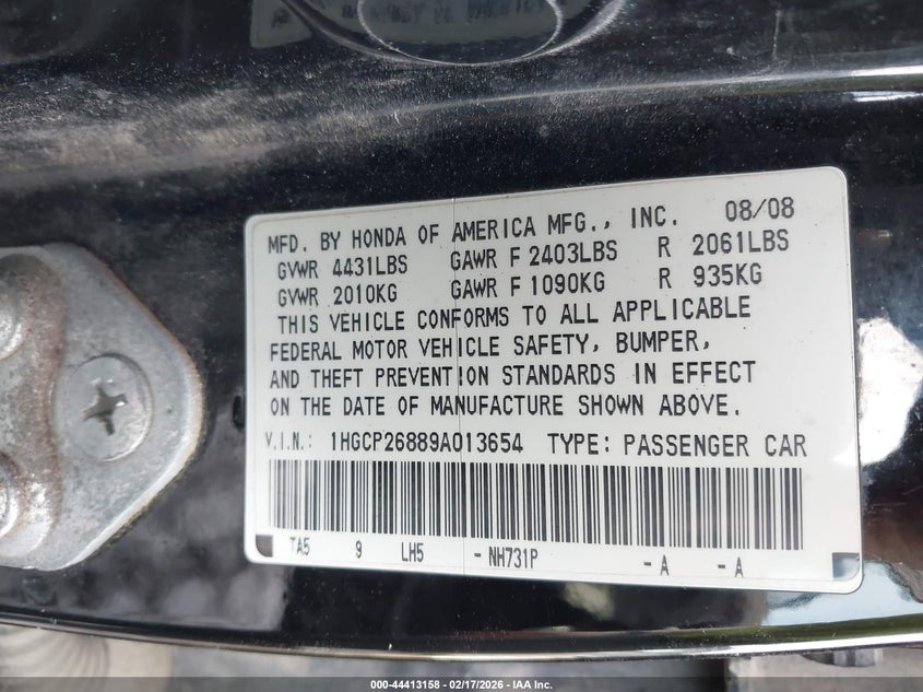 • 1HGCP26889A013654