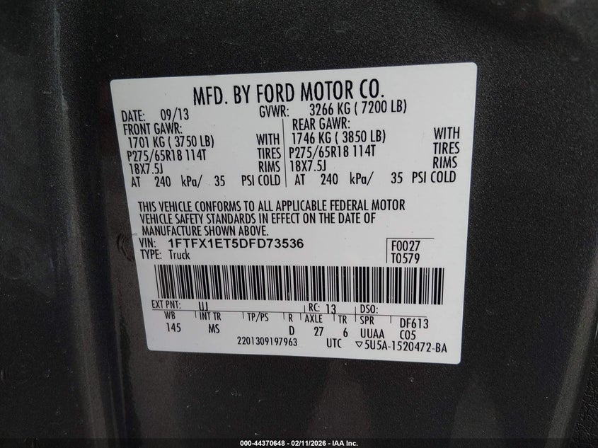 • 1FTFX1ET5DFD73536