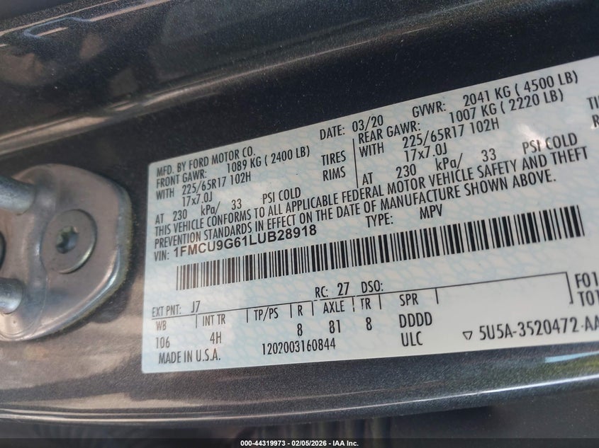 • 1FMCU9G61LUB28918