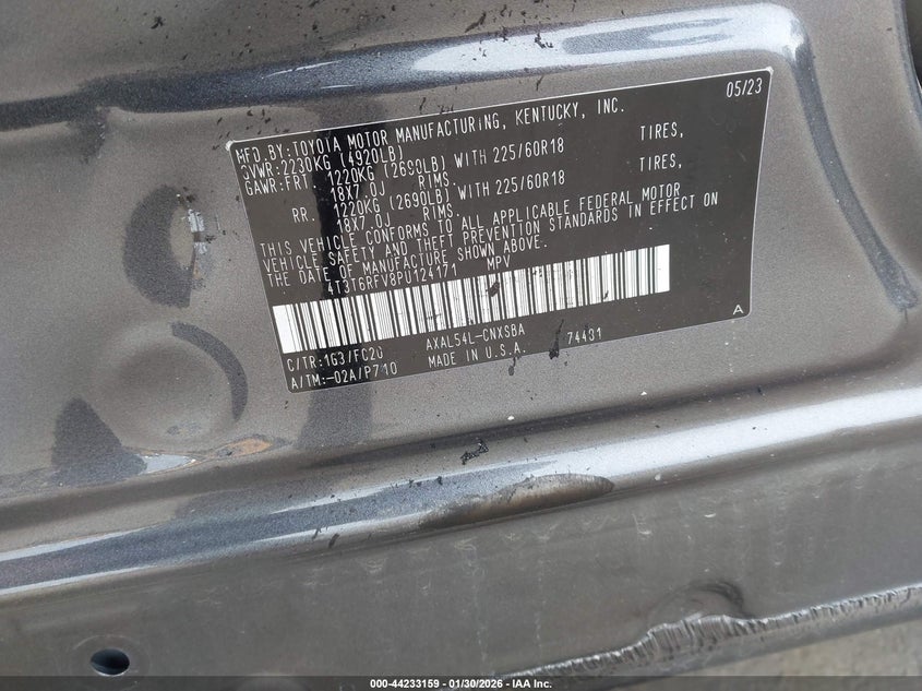 • 4T3T6RFV8PU124171