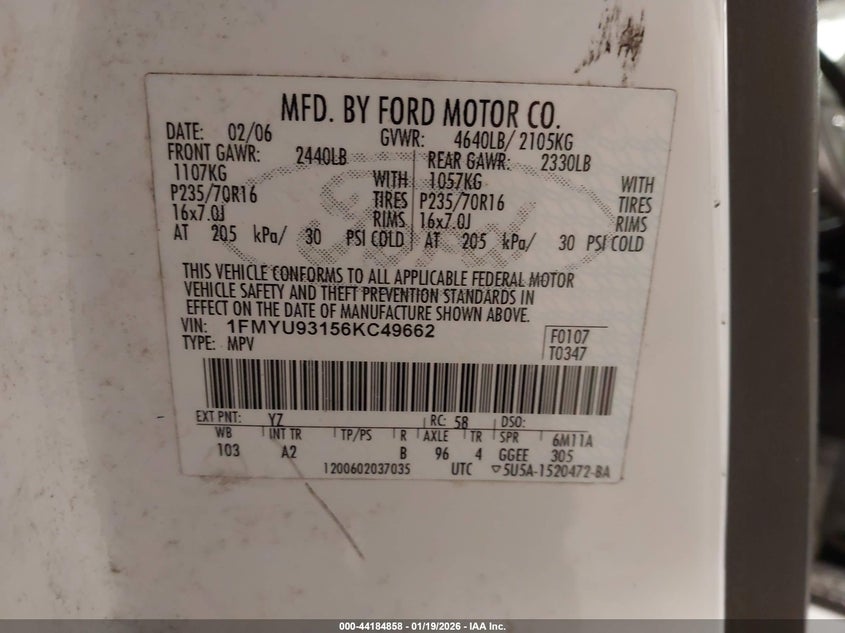 • 1FMYU93156KC49662