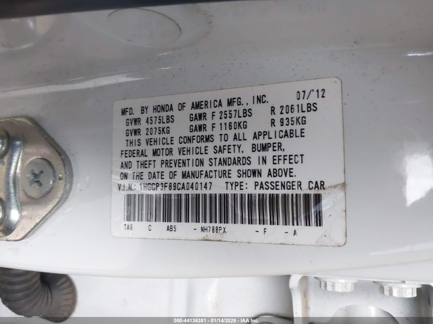 • 1HGCP3F89CA040147