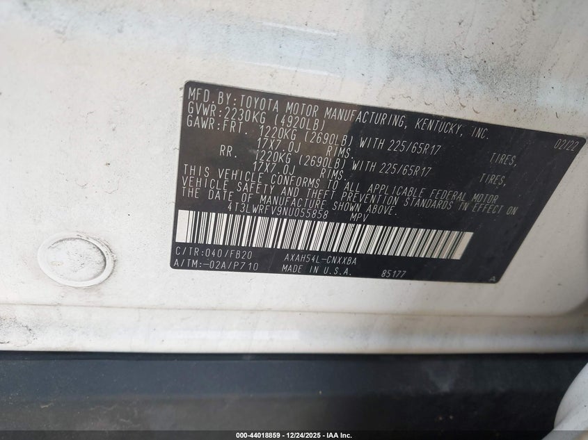 • 4T3LWRFV9NU055858