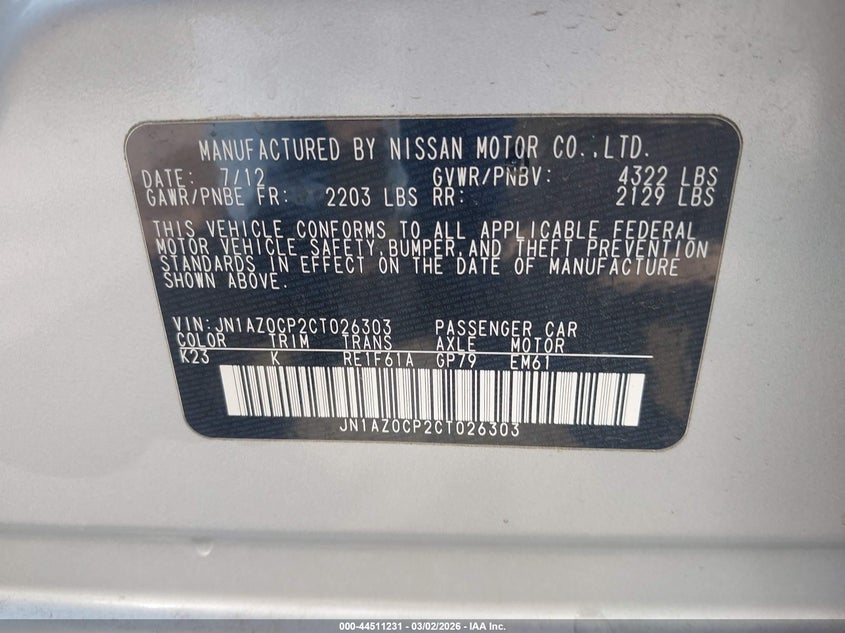 • JN1AZ0CP2CT026303