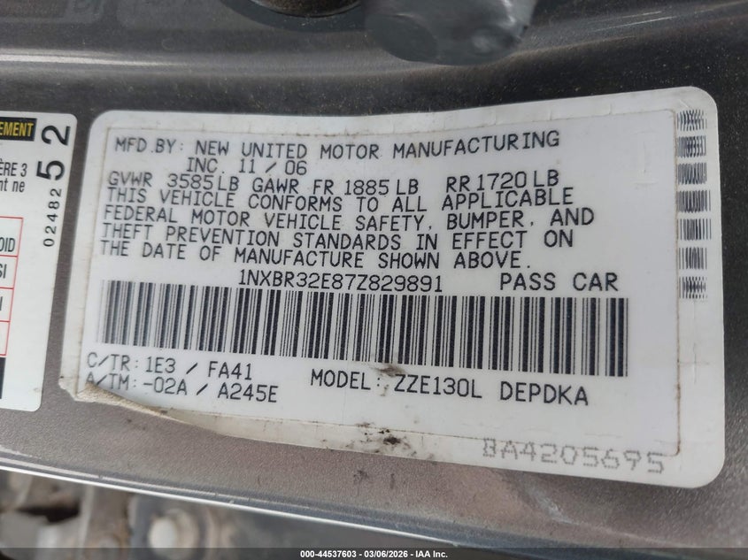 • 1NXBR32E87Z829891