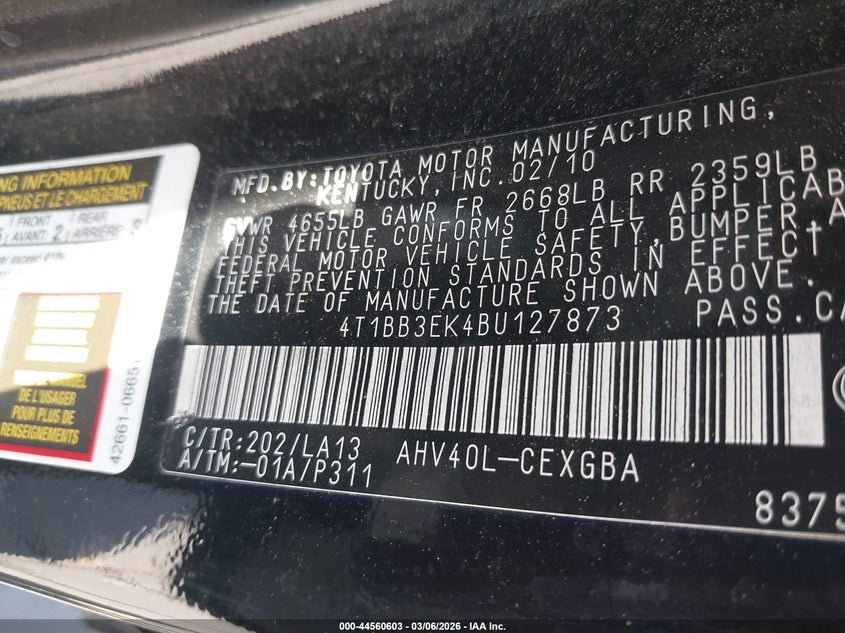 • 4T1BB3EK4BU127873