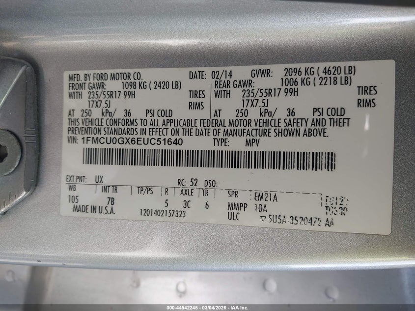 • 1FMCU0GX6EUC51640