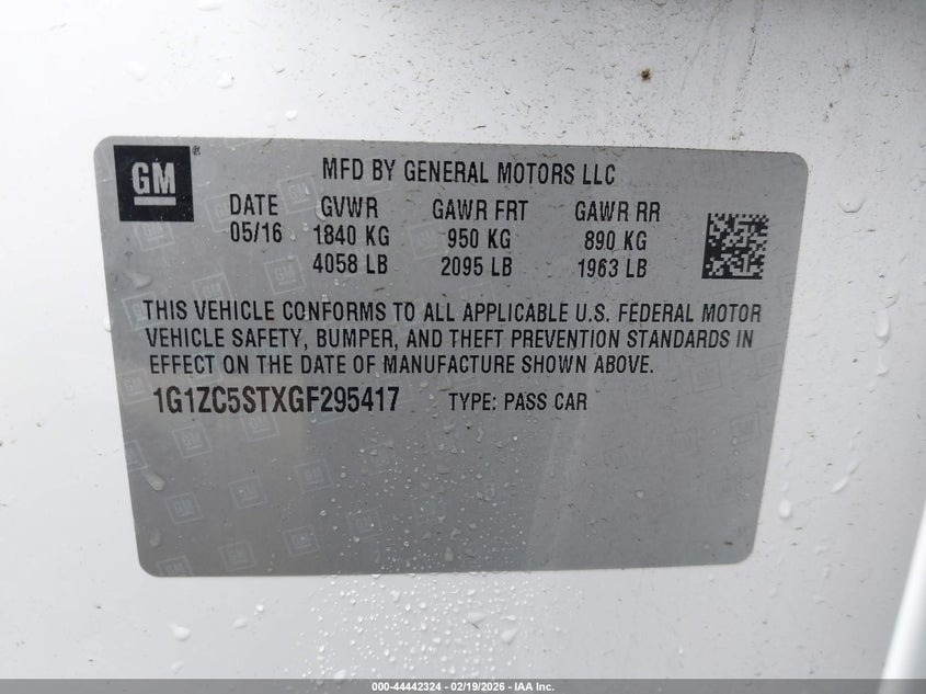 • 1G1ZC5STXGF295417