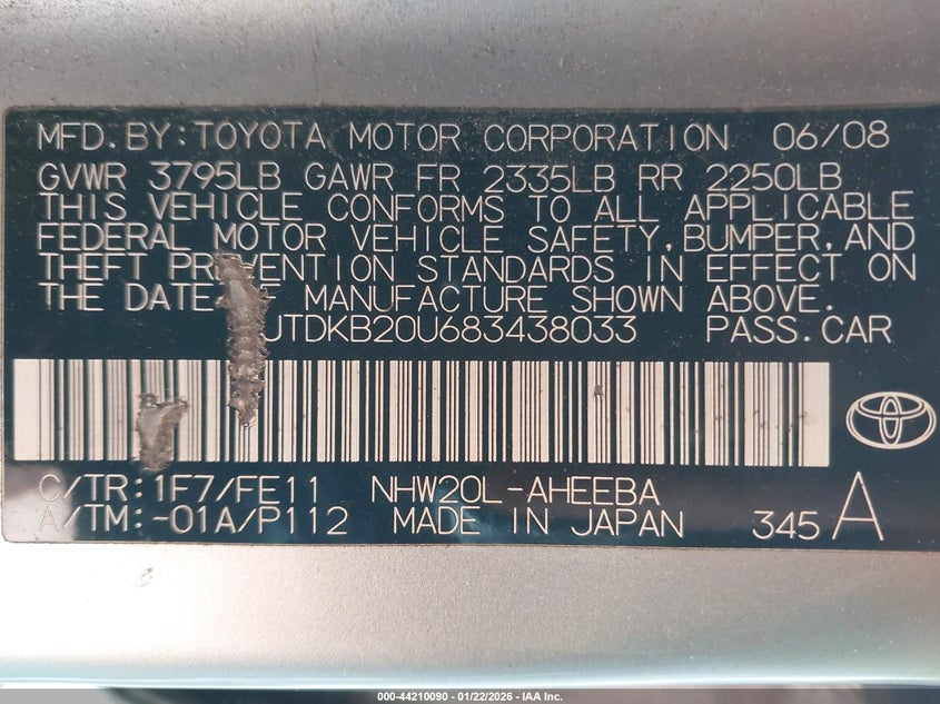 • JTDKB20U683438033