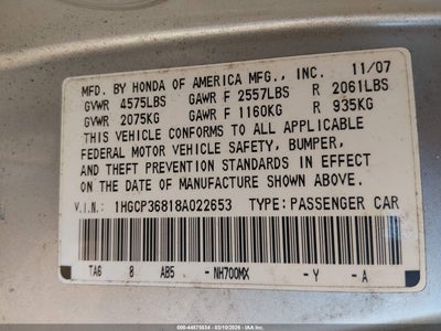 • 1HGCP36818A022653