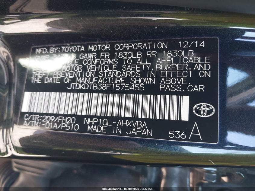 • JTDKDTB38F1575455