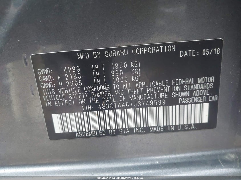 • 4S3GTAA67J3749599