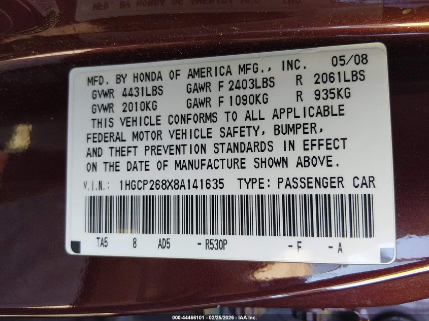 • 1HGCP268X8A141635