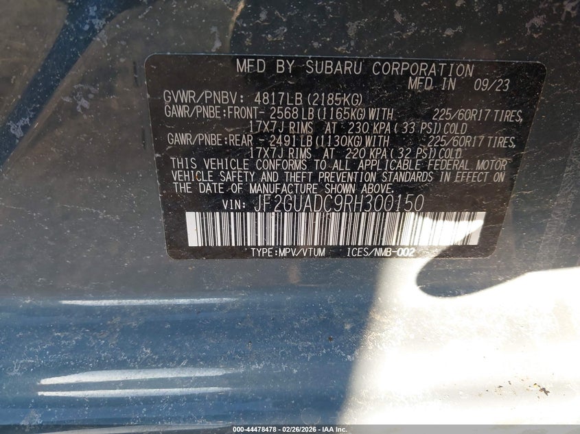 • JF2GUADC9RH300150