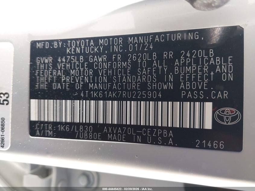 • 4T1K61AK7RU225904