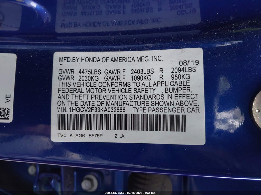 • 1HGCV2F33KA032886